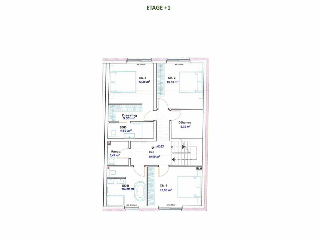 - Le 1er étage comporte, 3 chambres à coucher, un dressing, une salle de douche, une salle de bain, un débarras et un local rangement.